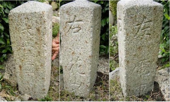 2つ目は、京都薬科大学南校舎北西角の駐車場の中にある厨子奥道標で「右 東六条 今くま 道」とある。