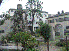 |  元蓮如上人像跡 | (9)東西本願寺の争いが解決 山階小学校から北へ歩くと、蓮如上人の御廟所が、門と築地に囲まれた木立の中にひっそりとたたずんでいる。蓮如(1499年没)は本願寺8代として各地で活発な布教活動を行い、衰微していた本願寺を再興。巨大教団発展への基礎を築き、山科に没した。 この御廟所を挟んで、江戸時代中期に東・西本願寺山科別院が建立された。江戸時代にはこの蓮如墳墓の所有をめぐって東西本願寺間で争いが続いていたが、1882(明治15)年、蓮如墳墓が東西本願寺共有の地として明治政府より与えられることになった。 また、外環状線と国道一号線の交差点から東南へ300メートルほど歩くと、9代実如・10代証如の墓もある。 東西別院の中間に蓮如上人の銅像(元蓮如上人像跡)があった。1934(昭和9)年9月の完成で、石の土台の上に大きな像が建てられていたという。しかし、終戦末期には「供出」に遭ったので現在のような形で残っている。約10年の期間であったが、東西別院と御廟所の関係でこの地点に設けられた。建立者は江戸時代の由比小雪の子孫(卯三郎氏)といわれ、黒岩淡哉作、高村光雲が顧問であった。いまは土台の石塔北裏に刻銘されたプレートがわずかに往時を偲ばせている。 2006(平成18)年、山科区役所が出した『モノクローム ヤマシナ』という冊子の中に1942(昭和17)年撮影の「蓮如上人銅像」(15ページ・写真番号2・024)という写真が掲載されているが、それを見ると高さが5メートル以上もあるかと思われるりっぱな像で、こういった文化遺産が戦争のために失われたことは、本当に残念なことと言わなければならない。いつか「再建」される日を期待したいものである。 | ||||||||||||||||||||||||||||||||||||||||||