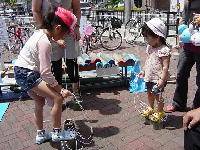 また、私たちのコーナーでは、竹作品作りの「実演」をしたり、子どもたちに遊び方も紹介して、楽しく見学し、遊ぶ子どもたちの姿が見受けられました。
