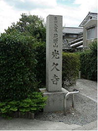 (6)真宗大谷派花園山 光久寺 光久寺は、永正寺から半世紀ほど遅れた永正年間(1502〜1520)に、徳田浄空という僧侶によって創建されています。 1898(明治31)年の『宇治郡名勝誌』によれば、「花園山光久寺は、大字厨子奥にある。真宗で大谷派本願寺の末寺となっている。本尊阿弥陀仏は重宗の作で、1508(永正5)年の創立にして、徳田浄空が開祖したと寺では伝えている。花園の山号は浄空で、蓮如上人に庭の花を贈ったところ上人がこれを賞して与えた。境内の坪数は393坪」と記されています。この記述は京都府山科町役場編纂『京都府山科町誌』(臨川書店1973復刻版p296)にもみられます。 |