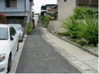 (2)牛尾街道 山科には音羽山にある「牛尾観音」が有名で、「牛尾街道」というのは牛尾観音への道とされていることが多いのですが、この地にある「牛尾街道」は、南北に通っているために、音羽山の牛尾観音への道とは考えられません。 「牛尾」というのは、もともとは固有名詞ではなくて、山の神様にお供え物をする場所のことを指している言葉で、全国各地に「牛尾」「牛尾山」というのが残っています。御陵にも天智天皇陵の東側に「御陵牛尾町」という所があり、これは鏡山あたりを中心とする「山の神様」にお供えをした場所であると考えられます。それゆえ、この「牛尾街道」は、御陵の「牛尾」に通じる道として名前がついたと思われます。天智天皇陵への「参道」という位置づけもありそうです。 道自身は、細い道ですが、古くからあったようで、明治初期の地図にも記載されています。ただ、その道は現在のJR東海道線トンネル南側の旧安祥寺川を渡るあたりで、東に曲がり、数十メートル東側に橋があって旧安祥寺川を渡ったようです。そしてまた西に曲がってからまっすぐ北向きに通っています。 |