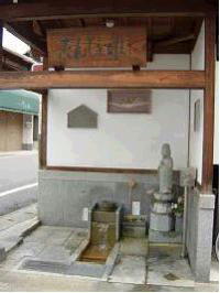 (10)だんじょ水(竹鼻竹ノ街道町) 竹鼻の商店街の中に「だんじょ水」という湧き水が沸いています。「だんじょ」とは「談所・壇所」を意味していて、僧侶が修行する所、お坊さん養成寺院の通称を意味しています。寛永20(1643)年にこのあたりの竹薮4000坪を切り開いて創建された日蓮宗護国寺のことを「だんじょのお寺」と呼んでいたそうです。 この「だんじょ水」は、水不足に苦しんだ竹鼻西部村民たちの願いにより、護国寺の余水を地下埋設水路によって現在地まで導水する工事をしたと言われています。用水路は、佐貫伍一郎氏によれば「三条街道近く木村家作業小屋の井戸から、途中二ケ所の溜桝井戸を結び、現タケムラ文房具店の南に出ている、延長約三百メートルの地下埋設水路のことである」(『山科郷竹ヶ鼻村村史』)となっています。建設時期については、「元禄8年(1695)から享保14年(1729)までの、元禄・宝永・正徳・享保の約三十年はどの間に、完成したと断定したい」(同)とされています。 地元ではこの用水のことを、単に「ダンジョ」と呼んできたそうです。以来だんじょの水は、昭和初期まで竹鼻地域の人々の生活を支えてきました。近年、宅地開発が進んだため「だんじょの水」は枯渇するという危機を迎えます。しかし、保存を願う有志の努力によって、姿を変え見事に復活し、今に至ります。なお、現在この水は飲み水としては利用できないとのことです。 |