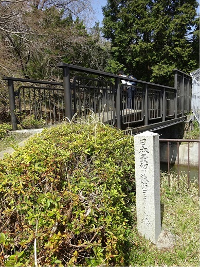 橋の横にある田辺朔郎筆による記念碑は、橋建設から30年近くが経って、田辺朔郎72歳の、昭和7年(1932)10月に建立されたものである。聞くところによれば、試験用の橋であったので永らく忘れ去られていたが、昭和5年(1930)の御陵山ノ谷での疏水決壊事故がきっかけで、改修工事に立ち合った田辺朔郎が「そういえばあの橋が一番最初の橋だ」ということで、記念碑建立につながったという。