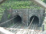(5)東海道本線のトンネル 東海道本線(山科地域)は、1880年(明治13年)に開通していますが、当初は山科の南部(現在の名神高速道路付近)を通るものでした。 これが花山地域を通るようになったのは、1921(大正10年)8月1日です。東山トンネルを掘り進むのは難工事であったといいます。 1914年(大正3年)12月から工事に着工、トンネルが貫通したのは、大正10年のことです。また、当時は大石道との交差地点(踏切)で事故も多発したらしく、大正14年5月に、地元から「至急踏切番を設置」するよう要望書が出されています。 花山交番から北へ少し歩くと,JRの東山トンネルが見えます。入口に「山紫水明」「古今相照」の石額があることはあまり知られてはいません。 |