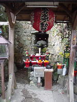 (17)木喰養阿上人伝説 安祥院(あんしょういん)開基の木喰養阿上人は丹波保津村に生まれ、梅ヶ畑に至芳庵を造って、30才時、京都の11カ所の無常所(墓地や葬儀堂)への念仏回向など、それを足場に活動をした。また、1717(享保2)年には各無常所に、亡くなった者の永代供養のため、名号碑(仏・菩薩の名前や尊号を記した碑)を建立した。中でも日ノ岡峠と蹴上浄水場の間にある谷には大きな処刑場があったので、一丈三尺(約4メートル)の石碑に「南無阿弥陀仏」と書かれた大名号碑が建立された。これを「粟田口名号碑(あわたぐちみょうごうひ)」と呼んでいる。 また、養阿上人は日ノ岡峠改修のために、住居である梅ヶ畑の至芳庵を日ノ岡峠近くに移し、これを木喰寺梅香庵(ばいこうあん)と名付けた。そして、境内に井戸を掘り、その湧水で旅人達に湯茶の接待や牛馬の水飲場を設けたという。これを「量救水(りょうぐすい)」と言い、現在、日ノ岡峠から数百メートル東(日ノ岡ホッパラ町辺り)の所にある。量救水(今は水道水)の出ている所は、この水を洞のなかの亀の形をした石の口から落としたため、以降「亀の水」と呼ばれるようになり、後に「亀の水不動尊」が奉られた。 実際に「亀」を近くに寄って見てみると、体は亀だが、頭には耳がついているなど、顔は狼や狐のような獣的な顔に近い。空想上の動物「玄武」と思われる。 この水は、お茶に適していたので、多くの人が汲みに来たと言われている。現在も地元の人により「亀の水不動尊」を祀(まつ)り、街道を行き交う人々を潤している。昔は敷地内には湯茶接待用の石のカマドが置かれており、カマドの側面には銘文が刻まれていた。 【陵ヶ岡学区】 |