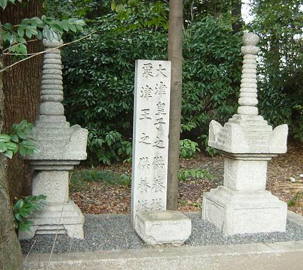 (2)大津皇子と粟津王 音羽森廻町の若宮八幡宮境内に大津皇子、粟津親王墓と伝えられる二基の古墳がある。大津皇子(663〜686)は、天武天皇の第三皇子、母の大田皇女は天智天皇の皇女である。体格や容姿が良く文武にも秀で、皇子でありながら謙虚な態度をとり、人士を厚く遇したため、大津皇子の人柄を慕う、多くの人々の信望を集めたと言う。しかし、686(朱鳥元)年9月に天武天皇が崩御すると、密告により、謀反の疑いがあるとして捕えられ、翌日奈良の磐余(いわれ)にある訳語田(おさだ)の自宅で自害させられた。24才であった。妻の山辺皇子も死を共にしている。万葉集に「辞世の歌」と呼ばれているものが残っている。 そして、その大津皇子と山辺皇女の二番目の子が粟津王である。粟津王については詳しいことはわかっていないが、一説では、大津皇子の死後、粟津王は音羽地域に移り住み土地の発展に力を注いだと言われている。その後粟津王は、父大津皇子に連座して備前豊原郷に流されたので、豊原氏の祖だとも言われている。若宮八幡宮境内の供養塔は、鎌倉(室町)時代、末裔たちにより大津皇子・粟津王の霊を慰める意味で建てられたものであろう。 【音羽川学区】 |