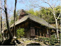 (29)春秋山荘 安朱地域の毘沙門堂から山科聖天を経て、さらに入った毘沙門奥橋の横に「春秋山荘」という手打ちそばの料亭があります。この山荘の建物は、山科にはめずらしいケヤキ造り藁葺き屋根で、訪問する人々の目を楽しませてくれます。 この建物は、昭和54(1979)年に琵琶湖の北部・滋賀県伊香郡木ノ本町にあった民家を移築したものであると言われています。明治3(1870)年建築で、もとは建物の中で養蚕を営んでいました。 ピーター・クリナウェイ監督「枕草子」をはじめ「宋家の三姉妹」等の映画、CM、写真等の舞台にもなり、過去多くの芸術家たちが訪れた場所です。 (安朱・稲荷山町) |