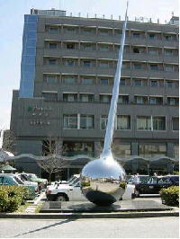(31)山科駅前のモニュメント 山科の玄関口、JR山科駅前のロータローに面白い形をしたモニュメントが建てられています。 横には「SEED 伊藤憲太郎 1998.10」と書かれた標識がつけられています。おそらく、山科駅前再開発が完成したおりに取付られたものと思われます。 大きな球を土台に天に突き刺すような細長い姿は、新しい山科の姿を象徴するモニュメントです。 (安朱・桟敷町) |