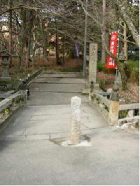 (10)毘沙門堂門跡前極楽橋 江戸時代の初期、後西天皇(在位1654〜1663)が毘沙門堂へ行幸された時、この橋から上を眺められ、「まるで極楽浄土のような清浄華麗な霊域である」と感嘆された所から、勅号でこの名がついたと言われいます。 それゆえ明治以前には、どのような高貴な人でも、この橋の前で下乗して、参拝したそうです。現在、橋の横には石碑が建てられています。 また、極楽橋と並んで西方にある橋は「毘沙門前橋」と名付けられています。 (安朱・屋敷町) |