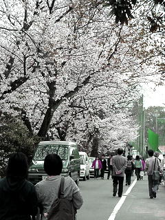 春ともなれば花見客で賑わいを見せる(京都府立洛東高等学校門前の桜並木)