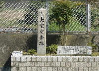 (5)大宅廃寺跡碑(大宅中学校校庭) 昭和33(1958)年に名神高速道路建設工事に伴って、大宅で寺院の伽藍跡が発見され、大宅廃寺跡ではないかと見られています。 これまでの調査では、東西約27m、南北約15mの石積基壇や、南北に並んだ四棟の掘立柱建物、土壇状遺構などが発見されています。出土品などから創建は白鳳時代であり、平安時代前期に一度全焼しましたが、その後に小規模な堂が建てられたものと思われます。 大宅廃寺は、山階(やましな)寺であるとする説や、平安前期の大領(だいりよう)(郡司の長官)宮道弥益の妻のために建てられた堂であるという説などがありますが、この地を地盤とする豪族「大宅氏」の氏寺とする説が有力です。 「大宅氏」から勧修寺の「玉の輿伝説」で有名な宮道列子(たまこ)が出ています。また「大宅氏」の祖は「物部氏」と言われ、大宅にある岩屋神社に祭らている、饒速日命(にぎはやひのみこと)は、物部氏の祖ともされていますから、これらから推測すると、この地は、物部氏−−大宅氏−−宮道氏−−(列子を通じて、藤原氏と合体)−−胤子−−醍醐天皇とつながるのではないかと思います。 現在、大宅中学校正門入口横に「大宅廃寺跡碑」があります。 |
