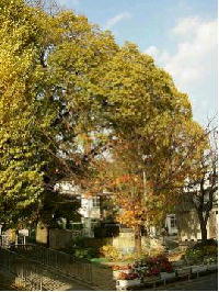 (11)四季折々の景観をみせる音羽小学校校庭のエノキ 音羽小学校校庭にひときわ大きく目立つエノキがあります。音羽小学校は昭和14(1939)年に開校しましたが、このエノキはそれ以前からあったと言われています。山科区民誇りの木にも指定され、高さが18.1m。幹の周囲は3.1mあります。 この木の西側には、当初は木造二階建ての「北校舎」が建っていました。昔は卒業記念写真は、必ずこの北校舎の南側で撮影されたということです。現在は鉄筋の「第三校舎」になっています。 現在、エノキのあるこの一帯は、ビオトープが整備され、子どもたちの憩う小広場として大事にされています。春夏秋冬、折々にすばらしい景観を示してくれています。また、頂上付近には種類は不明ですが夏から秋頃まで大きな鳥が巣をつくり、安全な子育ての場となっています。 |