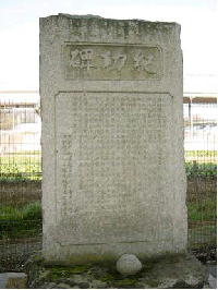 (5)「音羽水路紀功碑」(洛東用水) 疏水の完成と共に、疏水から水をひいて山科の田畑を潤そうと、用水路がつくられました。山科には3つの用水路がつくられましたが、その一つが音羽病院の横を流れる「音羽分水路」です。疏水の取水所から約1000メートルにわたって、四ノ宮・音羽地域を流れており、これによって音羽地域の人たちは、長年苦しんできた「水不足」からやっと救われることになったのでした。 この音羽用水路の完成を記念して、後に「音羽水路紀功碑」が建立されました。現在その記念碑は音羽病院敷地内の北側にあります。もとは、奈良街道と音羽用水(洛東用水)との交差点の南東側に建っていましたが、その後移転されたものです。 その東側新道路に新しい記念碑も建立されています。 |