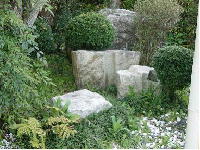 (2)音羽小学校正門の車石 音羽小学校校庭の一角に「車石」があります。正門から入った第一校舎の西側のところです。 この石は花崗岩でできています。花崗岩は、火山のある山などの地面の下、奥深くでゆっくりと冷えた石で、石の中ではやわらかい方なので、道標やお墓の石などにも多く使われています。 車石は、その昔、四ノ宮の「旧三条通り(山科北通り)」に敷き詰められていました。この道は、江戸時代には「東海道」と言い日本の主要道路でした。自体はかなり古く、平安時代の終わり頃にもここを通ったという記録がありますから、もう1000年以上も前からあったと思います。 |