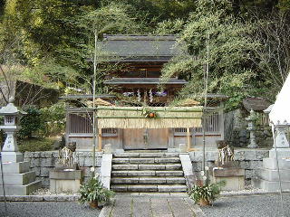 (5)鏡山校にもあった奉安殿 実は、鏡山校にも奉安殿はありまして、この写真が鏡山校の奉安殿です。(参加者から「私の行っていた時もありましたよ。簡単なものでしたけれど」との声あり)。そうですか、鏡山校の正門を入りますと、ありまして、やはりみんな登校した時と、下校の時は礼をしていたということを、私も聞いています。そういう時代があったということです。戦後の我々の頃は、二宮金次郎の像はまだありましたけれど(笑い)、さすがに奉安殿はもうありませんでした。こんなふうに、古い歴史の上に、今日の姿があるんだろうなと思っています。 次に「鏡山」なんですが、我々は鏡山学区に住んでいて、一番「鏡山」というのは慣れ親しんでいる言葉ですが、鏡山というのはよく言われますけれども、額田王(ぬかたのおおきみ)、昔の歌人ですが、その人の歌の中にでてくるものです。 天智天皇が亡くなって、御陵に陵墓を作った後に、ここから去っていく時に、挽歌(ばんか)というものを作りました。それは、資料にも入れていますけれども、次のようなものです。 やすみしし 我(わ)ご大君(おおきみ)の 畏(かしこ)きや 御陵(みささぎ)仕(つか)ふる 山科の 鏡(かがみ)の山に 夜(よる)はも 夜(よ)のことごと 昼はも 日のことごと 哭(ね)のみを 泣きつつありてや 百磯城(ももしき)の 大宮人(おほみやひと)は 去(ゆ)き別れなむ この中に「鏡の山」というのが出てきていましたので、ここから「鏡山」をとったということですね。だから、実は、もともと「鏡山」というのは天智天皇陵のことを「鏡山」と呼んでいたんですね。ところが、そのあとだんだんと変わってきまして、江戸時代に入りまして、天智天皇陵の後ろに連なる山のことを鏡山というんだというふうに変わってきました。 現在ではどうなっているかと言いますと、『鏡山小学校の50周年記念誌』というのがありますけれども、それによりますと「御陵の後ろの連山を言う」というふうに言われています。それを写真に撮らせていただいたのが、今日の資料の表紙に載せているものです(写真)。 ところが先ほども言いました吉田金彦さんという方、この方はおもしろい説を出しておられまして、この鏡山の連山について「左の大きい山は天智天皇を表し、右の小さい山は額田王を表している」と言っておられます。だからこれは、いわば「夫婦山」と言いますか、伊勢の二見浦にある夫婦岩じゃないですが、そうした説を立てておられます。 額田王という方は、ご存じかもわかりませんが、最初、天智天皇の弟の方の、後の天武天皇ですね、その方と仲が良くて、子どもまで出来ていたんですね。ところが額田王の魅力でしょうか、お兄さんの天智天皇が強引に自分の女御にしてしまったんですね。そういう経過のあった方ですけれども、「鏡山は夫婦山だ」と言われている説もあります。ただ歴史的に見ますと、それは無理があって、僕は天智天皇陵から来ているんだろうと思っています。 だから、正確に言いますと「鏡山」というのは地名ではないんですね。ところが、これが1931(昭和6)年に、当時宇治郡山科町と言われていた山科が、京都市に編入されまして京都市東山区山科に変わりましたときに、ちょうど時を同じくしてこの地に小学校が独立したんですね。その時に「鏡山」の名前をとって、鏡山尋常小学校と付けました。それ以後、この地域を「鏡山学区」と呼ぶようになり、地名に準じた形になったわけです。そんなふうに言われております。 他にも、鏡山だけではなくて、「鏡池」というのもあったらしくて、妙応寺(明王寺)というのが御陵別所町にあるんですけれども、昔はその境内に「鏡池」というのがあって、そこに天智天皇が自分の姿を映したんだとかも言われています。 それで、「鏡山」の由来はわかったんですけれども、「なんで鏡なんや」(笑い)ということで、額田王が天智天皇陵のことをなぜ「鏡山」と呼んだんやということを疑問に思ったんですね。 実は、いろいろ調べてみますと、滋賀県にも鏡山というのがあるんですね。これは実際にある山なんですけれども、竜王町の近くですが標高が385メートルです。ここには伝説がありまして、昔、アメノヒボコノカミという朝鮮半島の新羅から来た王がこの地を去り故郷に帰るときに、ここに王の印である鏡を埋めたために、ここを鏡山と言うようになったということです。 実は、額田王のお姉さんが鏡王女(かがみのおおきみ)と言われています。「鏡」という名前がついています。そしてお父さんが鏡王と言う名前で呼ばれていて、一説では滋賀県のこの地の出身であったとも言われています。そうした出生と、そこから類推すると、この天智天皇陵にも何らかの鏡を埋めた可能性があるわけですね。 で、その「鏡」は何の鏡かと言えば、これはもうご存じだと思いますけれども、天皇の「三種の神器」の中に鏡がありますね。その鏡を、もちろん本物ではないと思いますけ